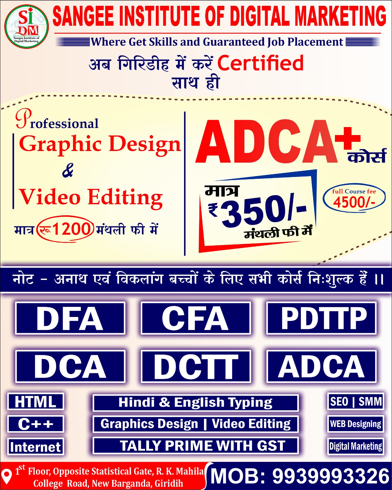 At Sangee Institute of Digital Marketing, we are dedicated to providing you with the skills and knowledge you need to thrive in the digital world. Join us today and take the first step towards a successful and fulfilling career in the field of digital marketing and computer education.